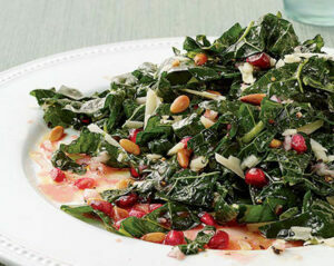 Baby Spinach Salad with Shiitake Mushrooms, Marcona Almonds, Pomegranate & Honey Garlic Vinaigrette The pomegranate seeds add a nice sweetness to this savory salad. Ingredients: