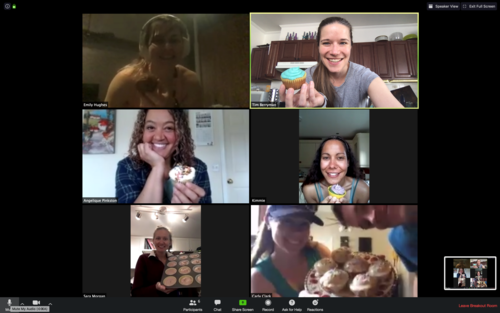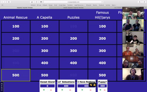 For his wife’s birthday, Tim arranged a full-day of video conferences, toasts and games. Collaborating among their friends, they arranged a cupcake toast, shared a bottle (or more) of wine, and enjoyed Jeopardy! hosted by a friend and 6-time Jeopardy! champion!