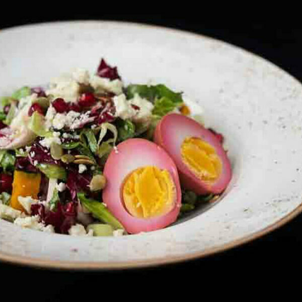 Chef Dima Martseniuk, Veselka: Veggie Reuben Latke / Smoked Ham Reuben Latke, homemade sauerkraut, homemade Russian dressing, Swiss cheese